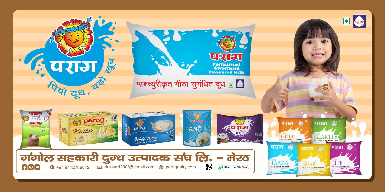 Experience the perfect blend of health and taste with Parag’s fresh milk and dairy products.